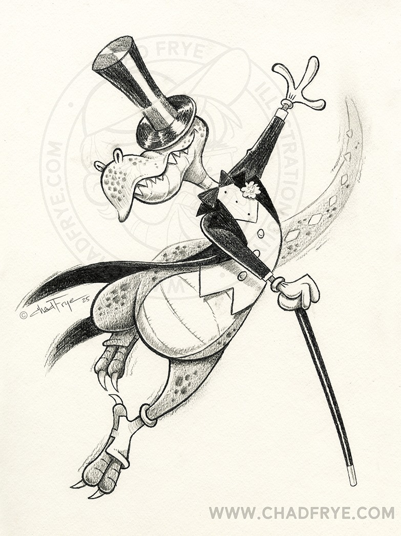 Dappergator started as an inked drawing in my sketchbook after which I decided to recreate him digitally with a mostly lineless look in color, adding in an old timey photo of London which I also edited a bit. He may be dapper, but believe me, he knows how to use those teeth.